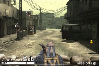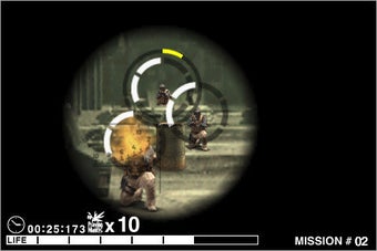 Se Metal Gear Solid Touch fosse stato realizzato su una console casalinga, sarebbe stato uno sparattutto con una pistola a raggio ottico. Ma su iPod touch/iPhone non può essere altro che uno shooter con il dito. Si trascina il mirino sullo schermo con un dito, e si spara con un rapido colpetto. Niente di complicato, peccato che la precisione sia quello che sia.